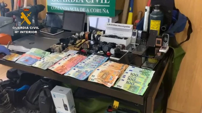 Dos de los componentes de la banda vivían en Vilagarcía y Caldas de Reis y otros dos se desplazaban desde Madrid para cometer los delitos. Los registros en los domicilios de los detenidos revelaron numeroso material, como dinero en efectivo, relojes y multitud de herramientas que utilizaban para realizar los agujeros y forzar cajas de seguridad. Entre ellas, figuraban radiales y martillos hidráulicos, así como walkie-talkies,móviles o prendas de vestir.