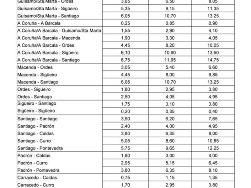 Tarifas de la AP-9 (fuente: Audasa)