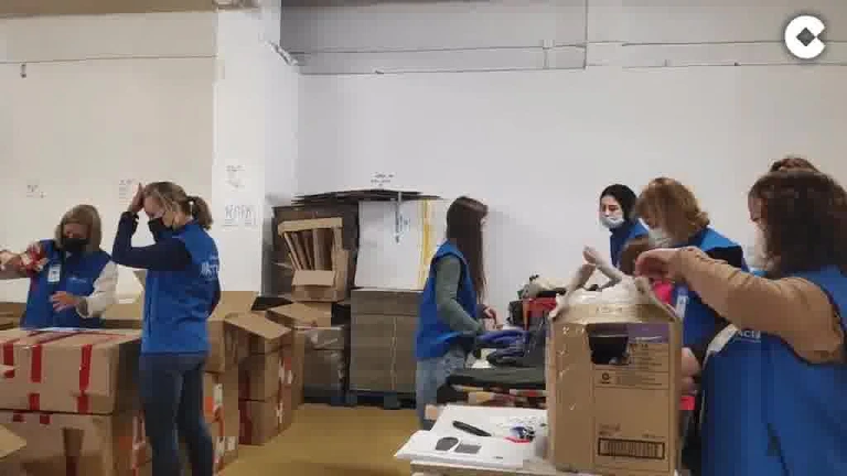 Irina, Eugenia o Ludmilla han llegado hace unas semanas y trabajan como voluntarias en AGA-Ucraína para clasificar el material de ayuda humanitaria