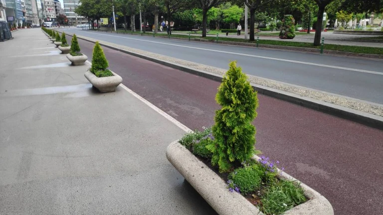 Una nueva decoración vegetal separa la parte peatonal del carril bici