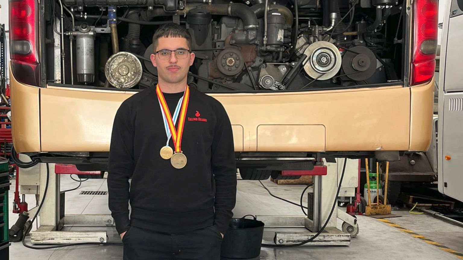 Manuel Prada, alumno de automoción en el Centro Integrado de Formación Profesional SOMESO, se hizo con el oro en la categoría de vehículos pesados. Su primer puesto en la fase gallega le dio el pase a la competición estatal. "Tenemos un vehículo industrial, un tractor, un camión, un autobús, una excabadora, en el que tenemos un fallo. Como técnicos, tenemos que resolverlo siguiendo el procedimiento, un procedimiento lógico, sin dar palos de ciego y llegando a resolver la avería en un tiempo determinado". Su victoria le permitirá ahora competir en el World Skills en Shanghái y en el Euro Skills en Dusseldorf.