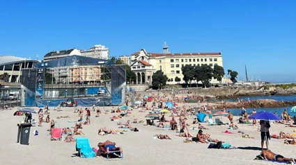 La bandera verde ayuda a sobrellevar esta ola de calor, a diferencia de los momentos de oleaje complicado de los últimos días. El espacio es más limitado, puesto que se está montando el escenario del Festival Noroeste para albergar conciertos el viernes y el sábado.