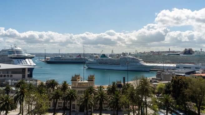 A Coruña recibió este viernes por la mañana su primera triple escala de la temporada. Desembarcaron en el Puerto de A Coruña los cruceros Arcadia, Norwegian y Aidabella. Un total de 6.600 cruceristas, 8.650 personas, sumando tripulación. Esto supuso desplegar un operativo especial del puerto, con buses lanzadera dentro y mucho movimiento tanto en el muelle de trasatlánticos como en la plaza de Ourense.