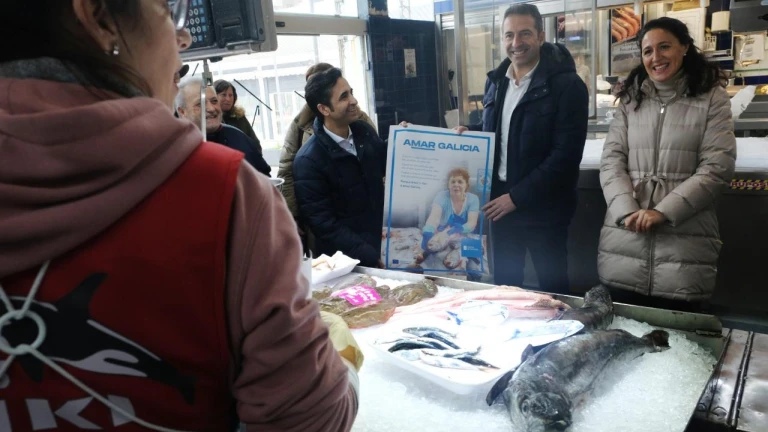Alfonso Villares en su visita al mercado de A Magdalena con Rey Varela - FOTO: Xunta