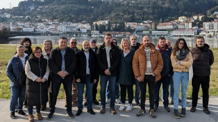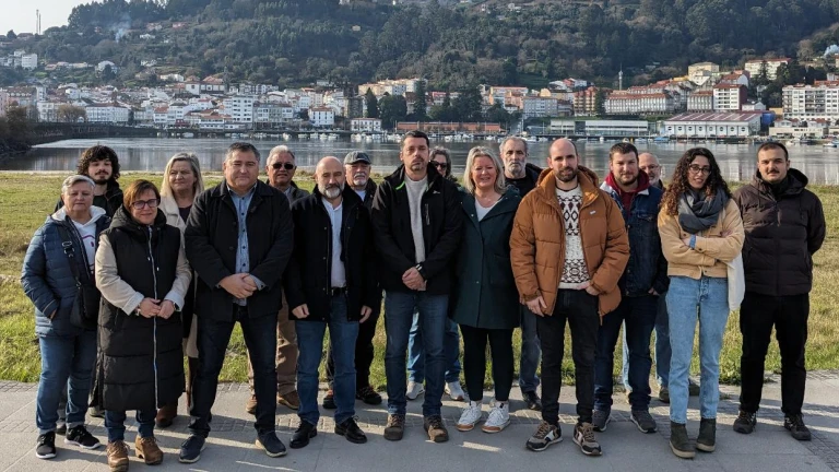 Néstor Rego con representantes del BNG este lunes en Cabanas - FOTO: BNG