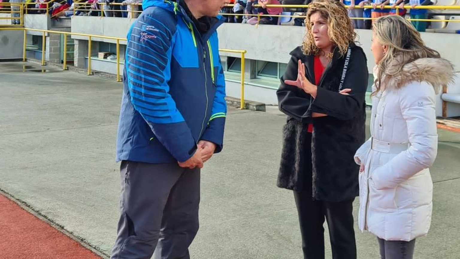 La delegada territorial de la Xunta, Martina Aneiros y la alcaldesa de Narón, Marián Ferreiro, se acercaron al estadio municipal de Río Seco