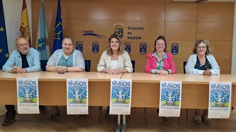 Narón celebra este sábado, día 6, la Fiesta de los Mayos, organizada por el Padroado da Cultura y la Sociedad Cultural Areosa y que fue presentada este miércoles, 3 de mayo, por la alcaldesa, Marián Ferreiro, la concejala de Cultura, Olga Ameneiro, y Maribel Mouriz, María José Yáñez y Abel González, vicepresidenta, tesorera e integrante respectivamente de la Sociedad Cultural Areosa, de Piñeiros.