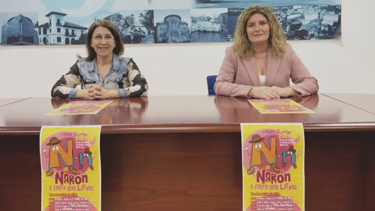 La alcaldesa de Narón, Marián Ferreiro, y la concejala de Política Lingüística, María Lorenzo, presentaron este lunes el programa “N de Narón, a festa das letras”, con el que un año más el Ayuntamiento celebrará este viernes el Día das Letras Galegas. Debido a la previsión meteorológica, las actividades serán en el Pazo da Cultura en horario de mañana y de tarde de los diferentes espectáculos y propuestas dirigidas a un público familiar.