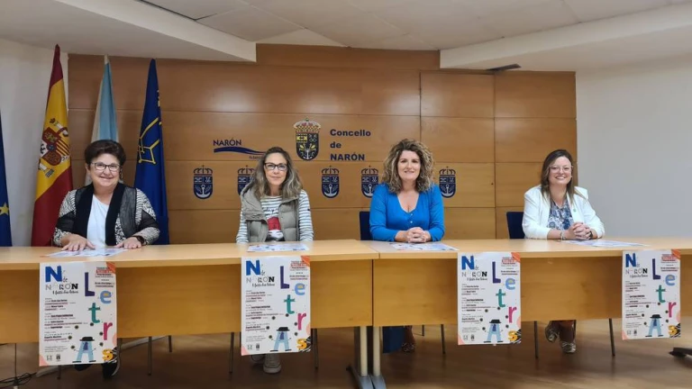 Las alcaldesa de la ciudad, Marián Ferreiro, presentó en el Ayuntamiento junto con las ediles de Enseñanza, Mercedes Taibo, Cultura, Olga Ameneiro y Fiestas, Natalia Hermida, los actos del programa “N de Narón. A festa de las letras”, organizados para conmemorar el próximo miércoles el Día de las Letras Galegas, dedicado este año al escritor lucense Francisco Fernández del Riego. Las diferentes propuestas, con acceso gratuito, se desarrollarán en la Plaza de la Lectura, junto a las Viviendas de la Mariña (Sata Icía), en horario de mañana y tarde.