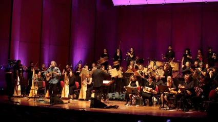 En este 2024, medio ciento de músicos conforman el corazón de una orquesta única en Galicia que, bajo la dirección de Xaquín Xesteira, cuenta con nueve sección instrumentales: arpa céltica, buzuqui, cuanto, contrabajo gaita, percusión, requintos, violín y zanfona.