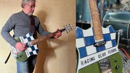 Este militar en la reserva acaba de realizar una pieza con el escudo del equipo de fútbol que será sorteada este viernes en el local hostelero Avanti