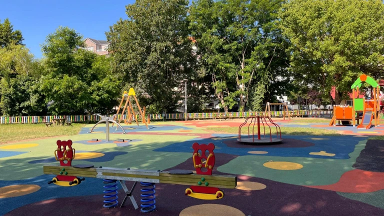 Se instalaron nuevos juegos, nuevos elementos de mobiliario urbano para adultos y un pavimento de seguridad