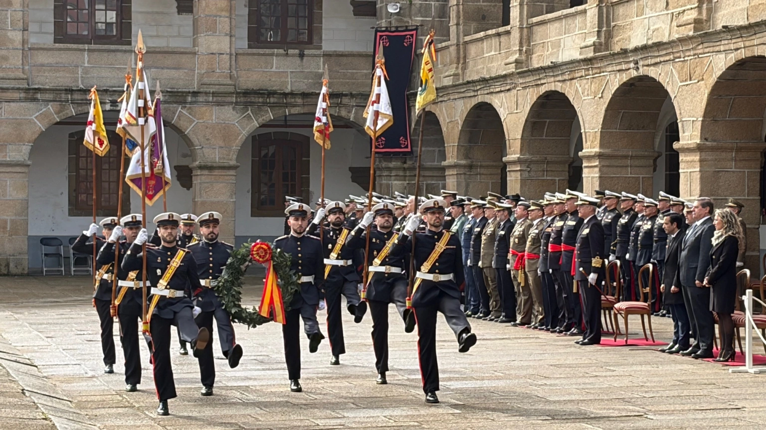 Piñeiro Sánchez ha estado acompañado en la presidencia por el comandante general de la Fuerza de Infantería de Marina, general de división José Luis Souto Aguirre, así como por el subdelegado del Gobierno en A Coruña, Julio Abalde; el alcalde de Ferrol, José Manuel Rey Varela; y la delegada de la Xunta en Ferrol, Martina Aneiros, junto a una nutrida representación de militares.