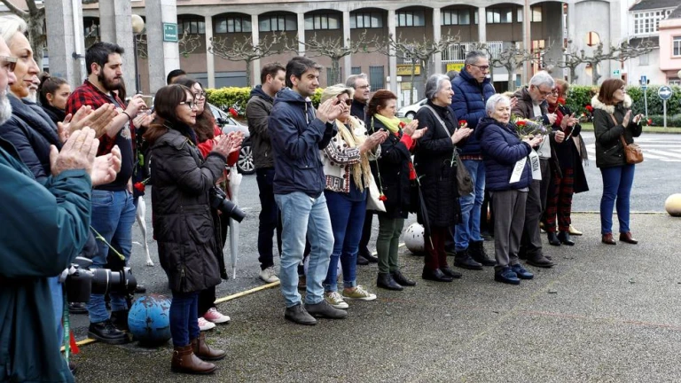 Participantes en la ofrenda en recuerdo al cámara ferrolano José Couso - FOTO: Efe / Kiko Delgado