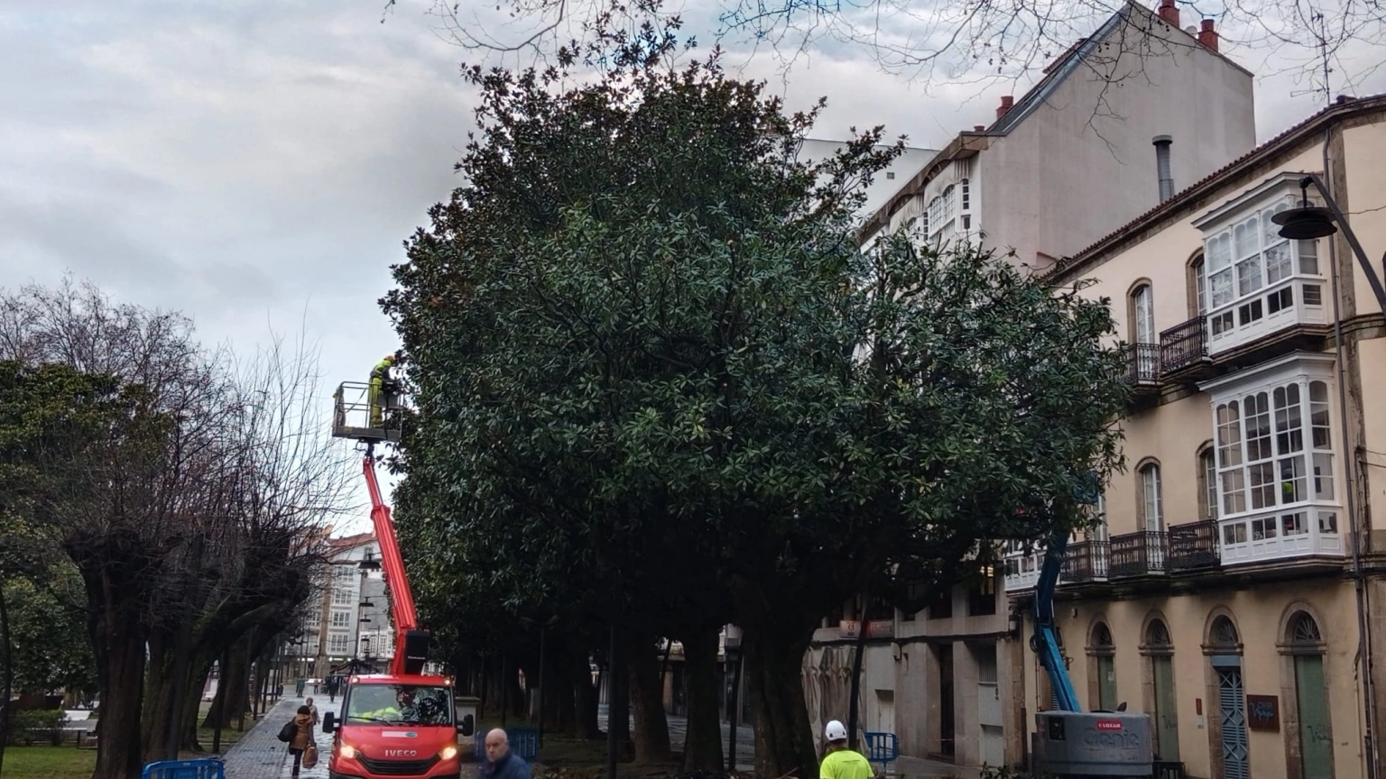 El Ayuntamiento de Ferrol inicia la poda de los magnolios del Cantón de Molíns