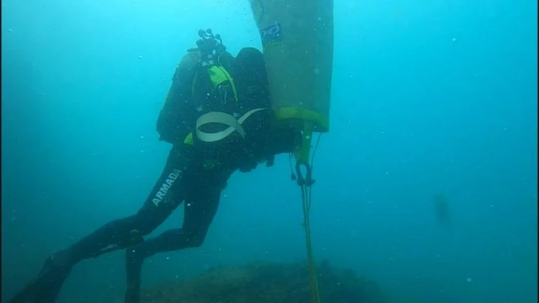 El Almirante de Acción Marítima ordenó destacar un equipo de desactivadores de explosivos submarinos, que procedieron a la comprobación y asegurado de los restos localizados para, posteriormente, llevar a cabo su extracción en menos de 24 horas.