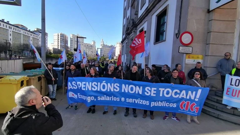 El secretario xeral del sindicato CIG, Paulo Carril, ha mostrado su rechazo a “la amenaza que existe sobre una reforma de las pensiones que lleve a una ampliación del periodo de cálculo a los 30 años” y que según Carril de llevarse a cabo esta medida “significaría que el incremento que llevamos acumulado de cerca de un 25 % de caída de la cuantía de las pensiones, como consecuencia de la reforma del 2011, que aumentó de 15 a 25 los años para el periodo de calculo, pues significaría sumarle ente un 6 y un 8 % más”, según ha detallado el máximo responsable del sindicato nacionalista en Ferrol, en un concentración que han desarrollado desde las 11,30 horas ante la sede del Instituto Nacional de la Seguridad Social (INSS), en donde se ha concentrado en compañía de delegados y afiliados, y que también se ha desarrollado en las otras seis grandes ciudades de Galicia, además de Ribeira (A Coruña) y en las localidades pontevedresas de Lalín y Vilagarcía.