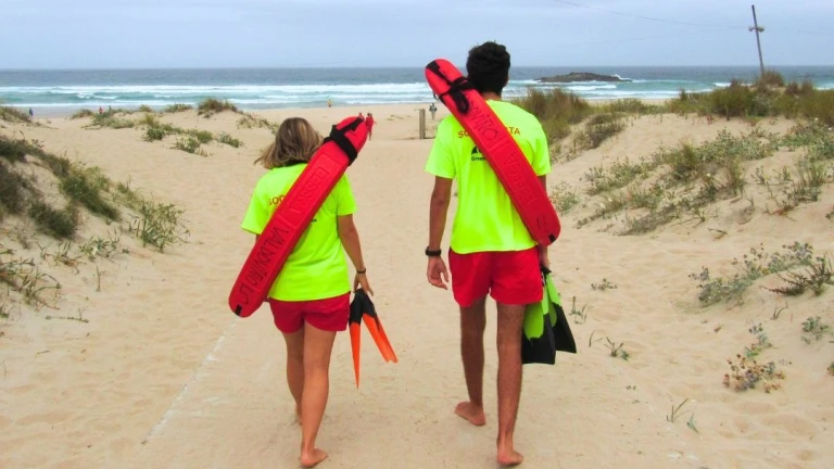 Foto de archivo de dos socorristas en la playa de A Frouxeira