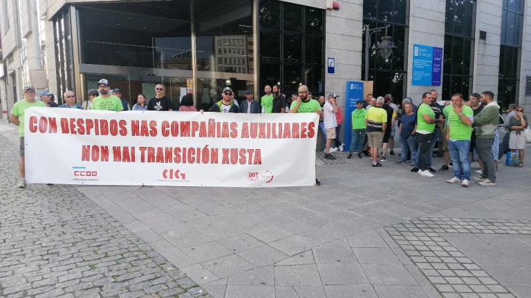 Cerca de un centenar de trabajadores de las empresas auxiliares de la central térmica de Endesa en As Pontes de García Rodríguez (A Coruña) se han concentrado en la mañana de este miércoles, 11 de octubre, ante el edificio administrativo de la Xunta en Ferrol, para asegurar que “lo que se está produciendo no es una transición justa”, según ha manifestado uno de los operarios, Celso Barro.