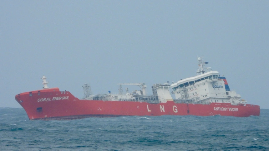 Foto de archivo de un mercante escorado por un temporal en nuestras costas