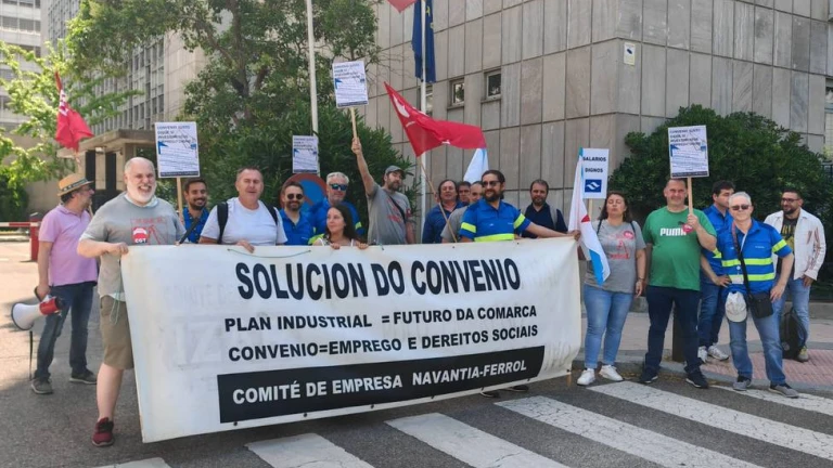 Delegados de los trabajadores en los dos astilleros que la empresa naval pública Navantia tiene en la ría de Ferrol han llevado este miércoles sus protestas hasta la capital del Estado, en donde se ha concentrado ante la sede de compañía en Madrid y también de la Sociedad Estatal de Participaciones Industriales (SEPI), única accionista de la misma.