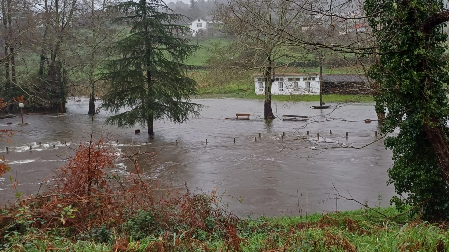 El Concello pide extremar la precaución ante la crecida del caudal, que también ha anegado el área recreativa de A Cobeluda por el desbordamiento del río Castro