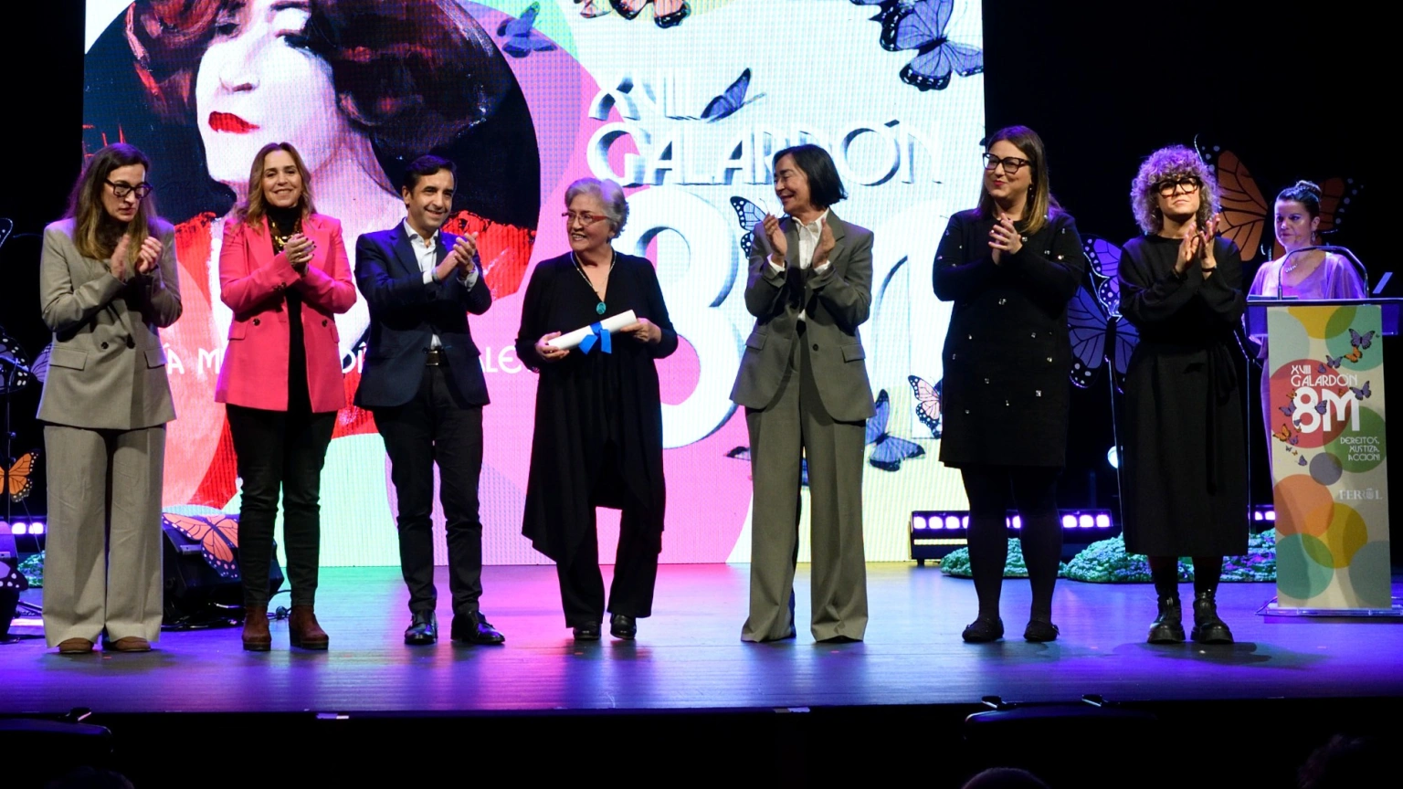 Ferrol homenajea a la artista María Manuela con el galardón del 8M en un Teatro Jofre repleto