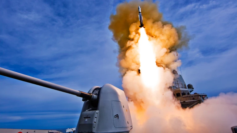 Momento en el que es lanzado el misil desde la cubierta del buque militar