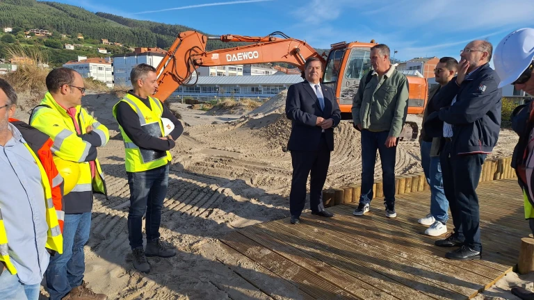 El subdelegado del Gobierno en A Coruña, Julio Abalde, visitó en la mañana de este miércos las avanzadas obras de mejora de la morfología y el sistema dunar de la playa de A Madalena en Cedeira.
