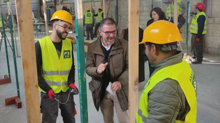 El regidor asistió, acompañado por la concejala de Empleo, María Teresa Deus, al inicio de la primera fase, las prácticas en albañilería.