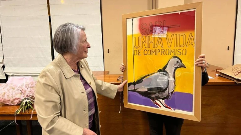 El homenaje, que era una sorpresa para Sari, arrancó con unas palabras de la Coordinadora Local de IU Ferrol indicando que “es importante celebrar los valores de la República pero más importante es poder celebrar a las personas que lucharon por ellos, como Sari Alabau”.
