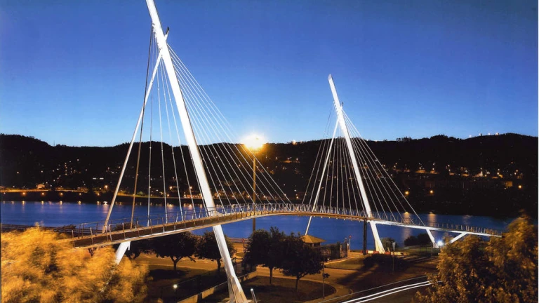 Inaugurada a finales de abril de 2010 tras una inversión de 2,8 millones, la pasarela es obra del ingeniero ferrolano Antonio González Serrano. Su esbeltez le ha valido varios reconocimientos.