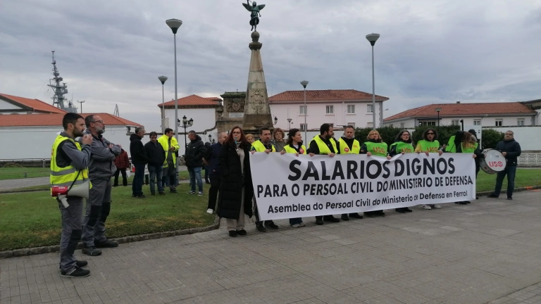 Personal civil del Ministerio de Defensa se concentró este jueves ante la entrada del Arsenal Militar de Ferrol para reclamar un aumento salarial que sea equiparable al concedido al personal militar y la consolidación de las subidas retributivas realizadas a finales de este año.