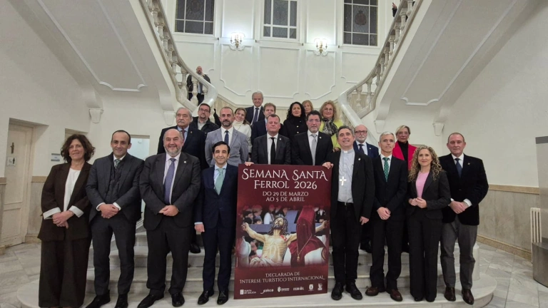 La Junta General de Cofradías y Hermandades de la Semana Santa de Ferrol ha presentado este viernes, 16 de enero, en el salón de recepciones del Ayuntamiento, el cartel oficial para la edición de 2026. La imagen promocional está protagonizada por el Cristo Redentor de la Cofradía de la Merced, coincidiendo con el centenario de la inauguración de su capilla y de la llegada de la talla del imaginero José Rivas a la ciudad.