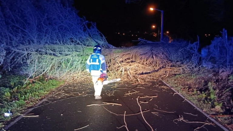 Retirada de árboles: Se han registrado caídas en el lugar de Aneiros, la calle Valenta, la carretera de San Pedro de Leixa y la calle Cangrexeiras, donde un árbol se desplomó sobre un muro. Especialmente relevante fue la actuación en la calle Pérez Parallé, donde un ejemplar cayó sobre un vehículo.