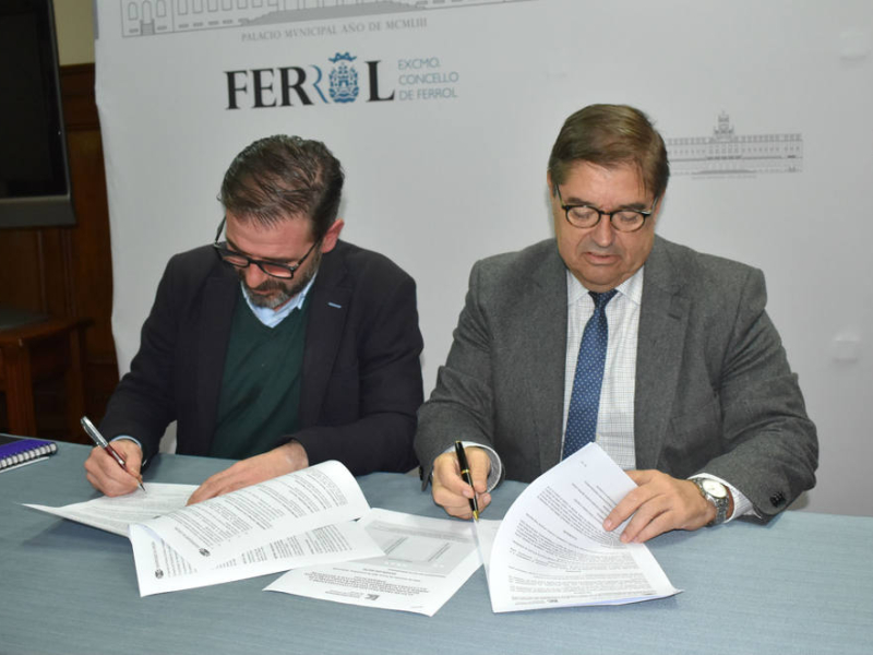 El alcalde de Ferrol y presidente de la mancomunidad, Ángel Mato, y el rector de la UDC, Julio Abalde, han sellado en la tarde de este lunes, 11 de noviembre, el convenio para la creación de esta cátedra en un acto celebrado en el Ayuntamiento.