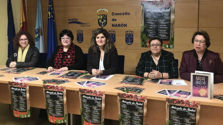 La alcaldesa de Narón, Marián Ferreiro, presentó esta mañana el programa, "Nadal en Narón" , acompañada de las ediles de Fiestas, Mar Gómez; Cultura, María del Carmen Espada; Acción Social, Catalina García y Promoción Social, Teresa Sabio.