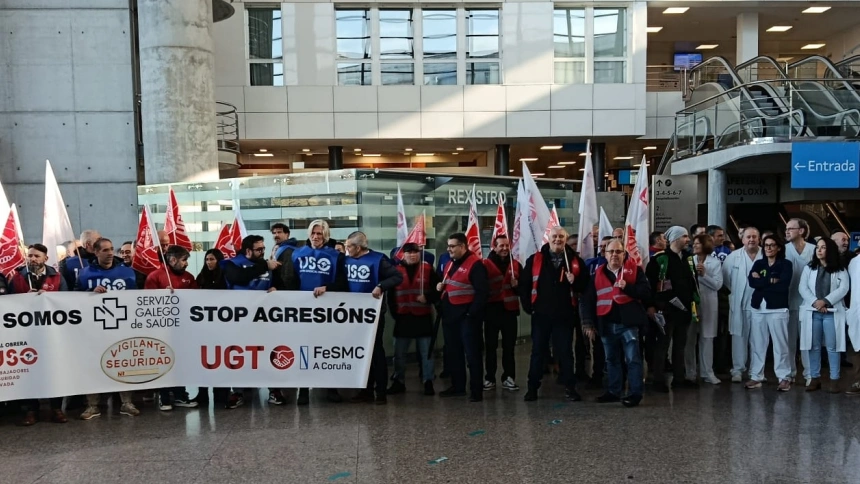 Vigilantes y sanitarios se han concentrado en Ferrol y otras ciudades de Galicia para denunciar el aumento de agresiones físicas y verbales que sufren en su trabajo. La protesta llega tras la brutal agresión a un vigilante en un centro de salud de A Coruña, que perdió parte de una oreja. Los sindicatos, como UGT, lo consideran un problema estructural y exigen sentar a la Consellería de Sanidade para crear un protocolo unificado en el Sergas. Rafael Afonso, vigilante de seguridad en el Hospital Arquitecto Marcide de Ferrol y delegado de UGT, expone la crítica situación del colectivo.