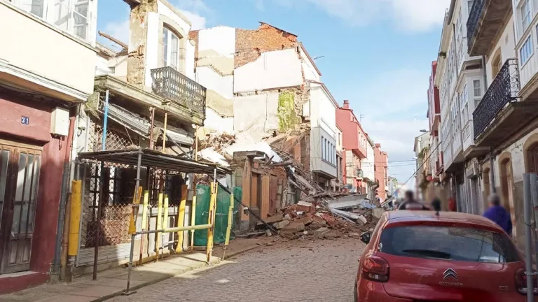 Según las primeras informaciones a las que ha tenido acceso COPE Ferrol no se ha registrado ningún herido, pero dos vehículos que estaban estacionados en la zona se vio alcanzado por algunos de los restos del edificio.