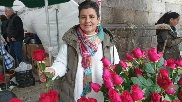 Carmiña lleva cuarenta años vendiendo flores en Santiago el día de Santa Rita