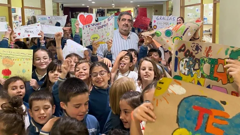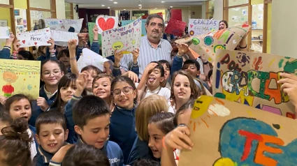 Chema, el conserje del Colegio Peleteiro, emocionado por la sorpresa que le prepararon en el cole