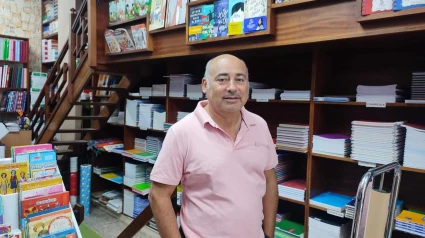 Santiago Mayo, de librería Mayso, nos atiende desde su estrablecimiento. Subidas en el material escolar y libros de texto que no estarán disponibles para el arranque del curso. Este establecimiento ha percibido que los hogares están "más comedidos" en el gasto