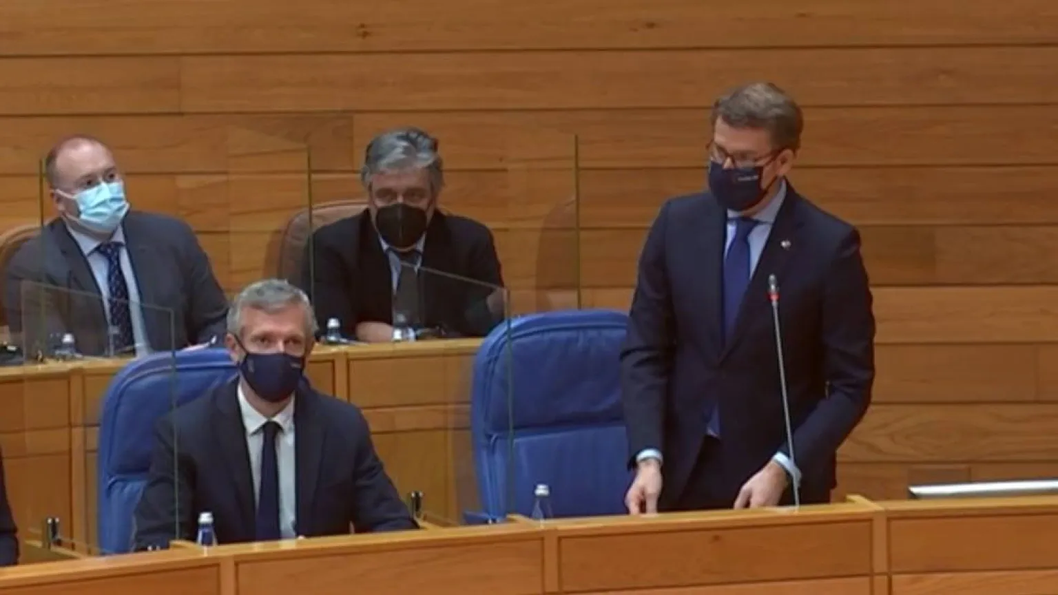 Un emocionado Alberto Núñez Feijóo anuncia la salida de la mayor parte de su gobierno de la Cámara gallega