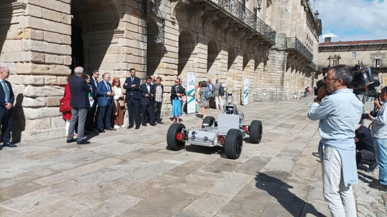 Nos acercamos al Obradoiro para contar la demostración del coche autónomo que, en un futuro, se dedicará al reparto de mercancías en la zona histórica de Santiago.