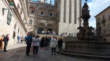 Ambientazo en el Obradoiro y en una zona histórica que ya recibe a miles de visitantes y turistas.