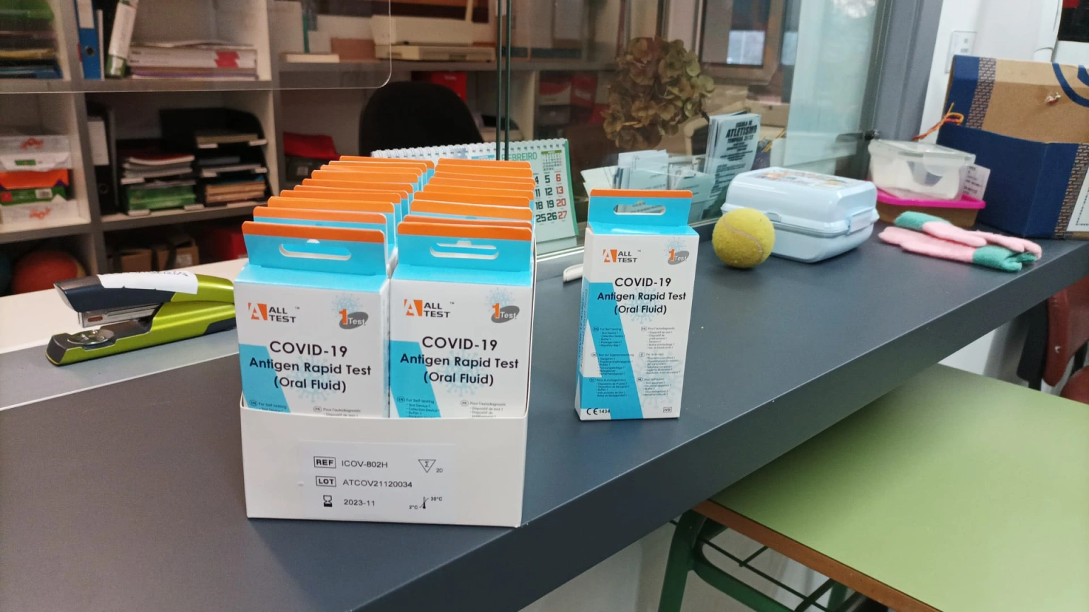 Hablamos de covid en la escuela... Desde hoy los centros cuentan con test de antígenos para repartir entre los compañeros del alumnado contagiado. A primera hora, llegaron las cajas por ejemplo, al Ceip de Pedrouzos, en Brión
