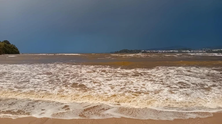 La ría de Betanzos se tiñe de marrón con la alerta roja en el mar