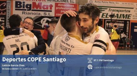 Última hora del derbi Breogán-Obradoiro. Hablan Álvaro Muñoz y Sergi Quintela. Última hora del Compostela-Coruxo. Rodri Veiga. El Noia, a por el ascenso a Primera en fútbol sala.
