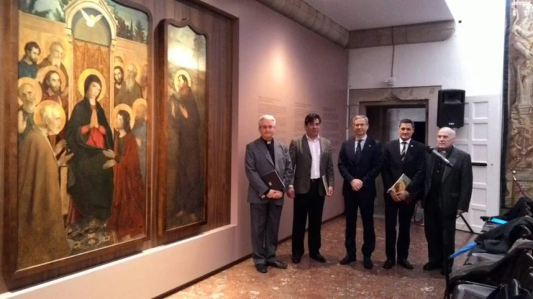 Ayer asistíamos al Salón de Tapices de la Catedral de Santiago a la presentación de la restauración del Tríptico de Pentecostés.