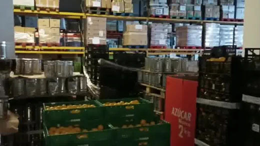 Acaban de recibir también un pequeño cargamento de fruta fresca procedente de un siniestro de un camión: los voluntarios del banco se encargan de cambiarla de caja y revisar que lo que llega a las asociaciones esté en perfecto estado. Otras veces son los "caprichos" del mercado los que se encargan de suministrar la gran nave que el Banco tiene en el Polígono del Tambre: "la fruta y hortaliza... si es un calibre muy grande, pues resulta que no se vende muy bien, y nos la regalan... y si es muy pequeña, pues lo mismo, nos lo ofrecen y nosotros, para delante!".